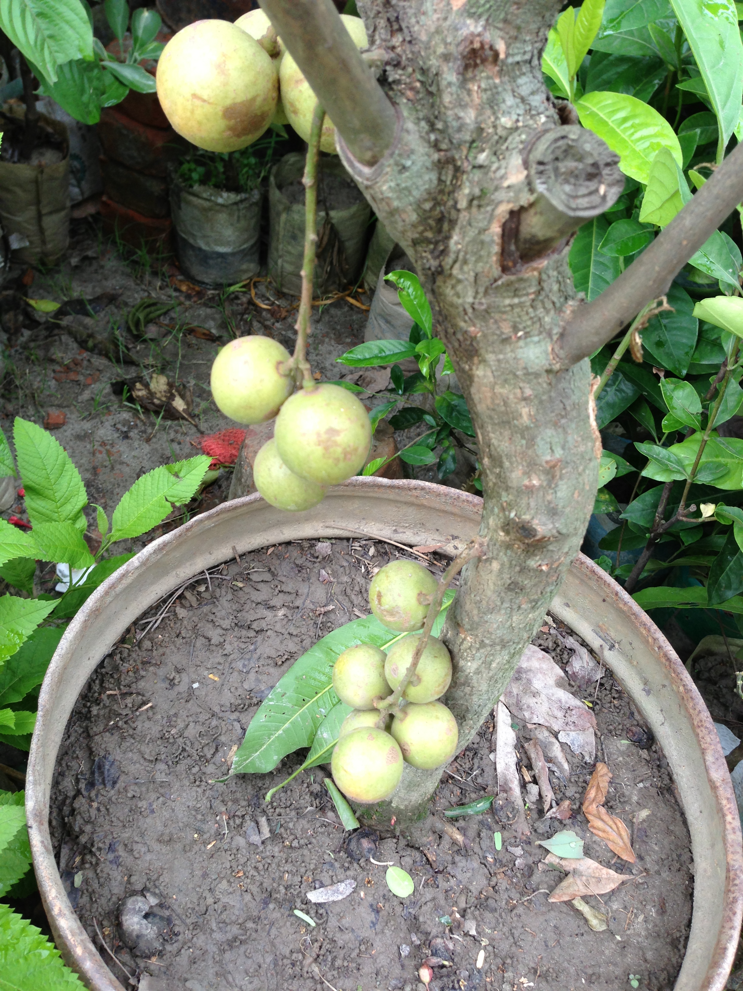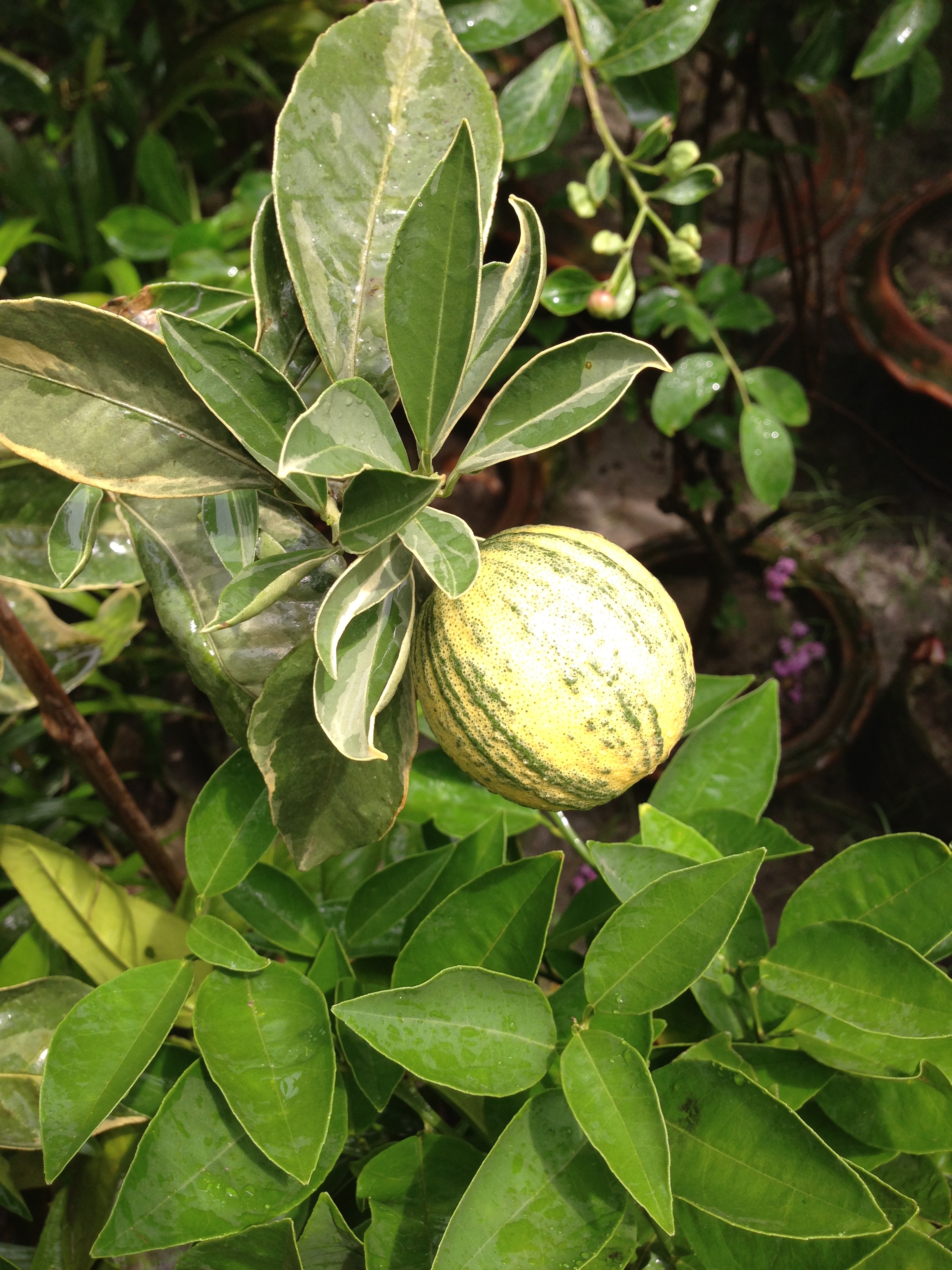 A mini tree with fruits but I don’t know its name. I have had the fruits before and it is a little on the sour side.