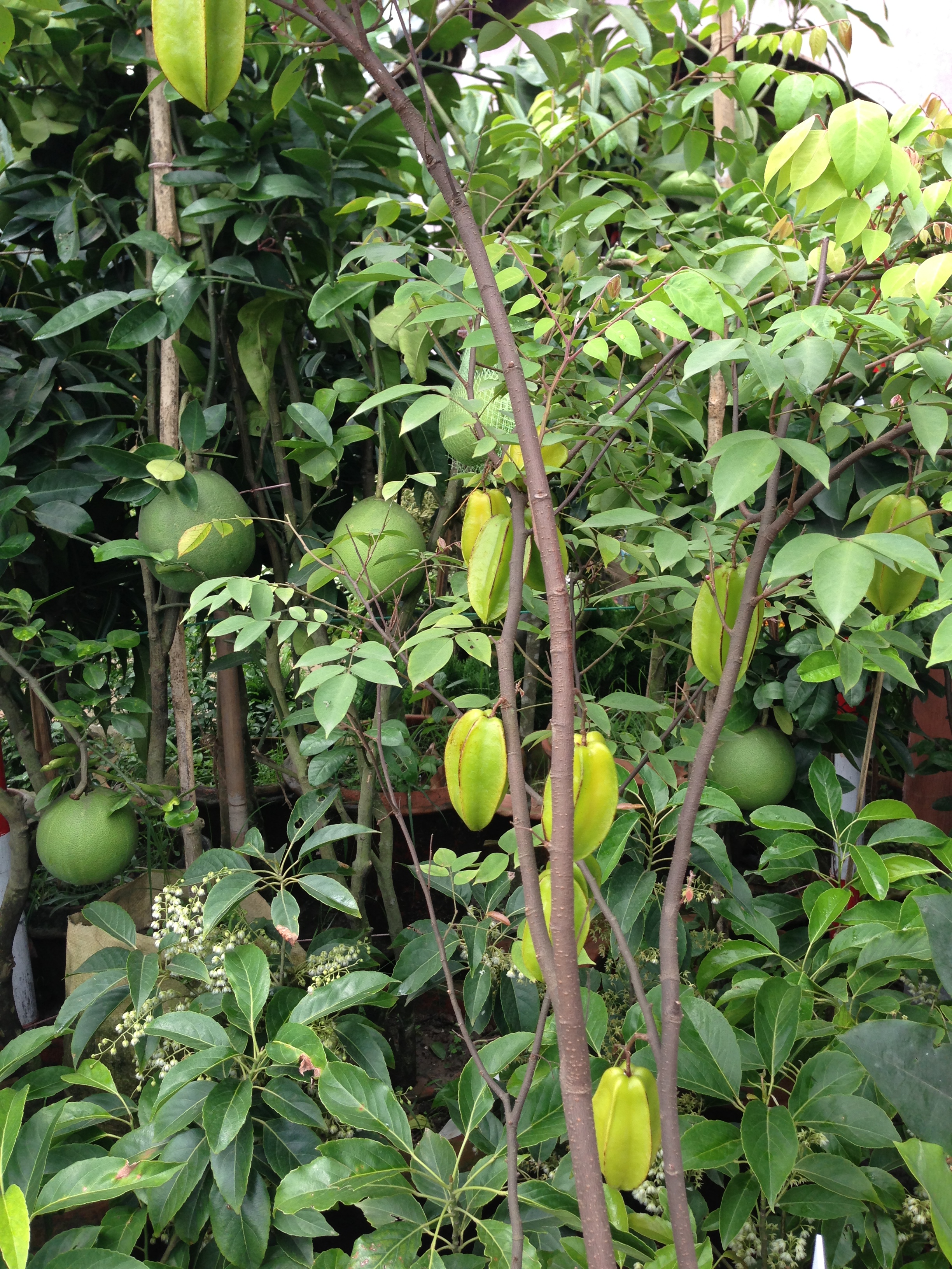 Star fruits on a miniature tree.