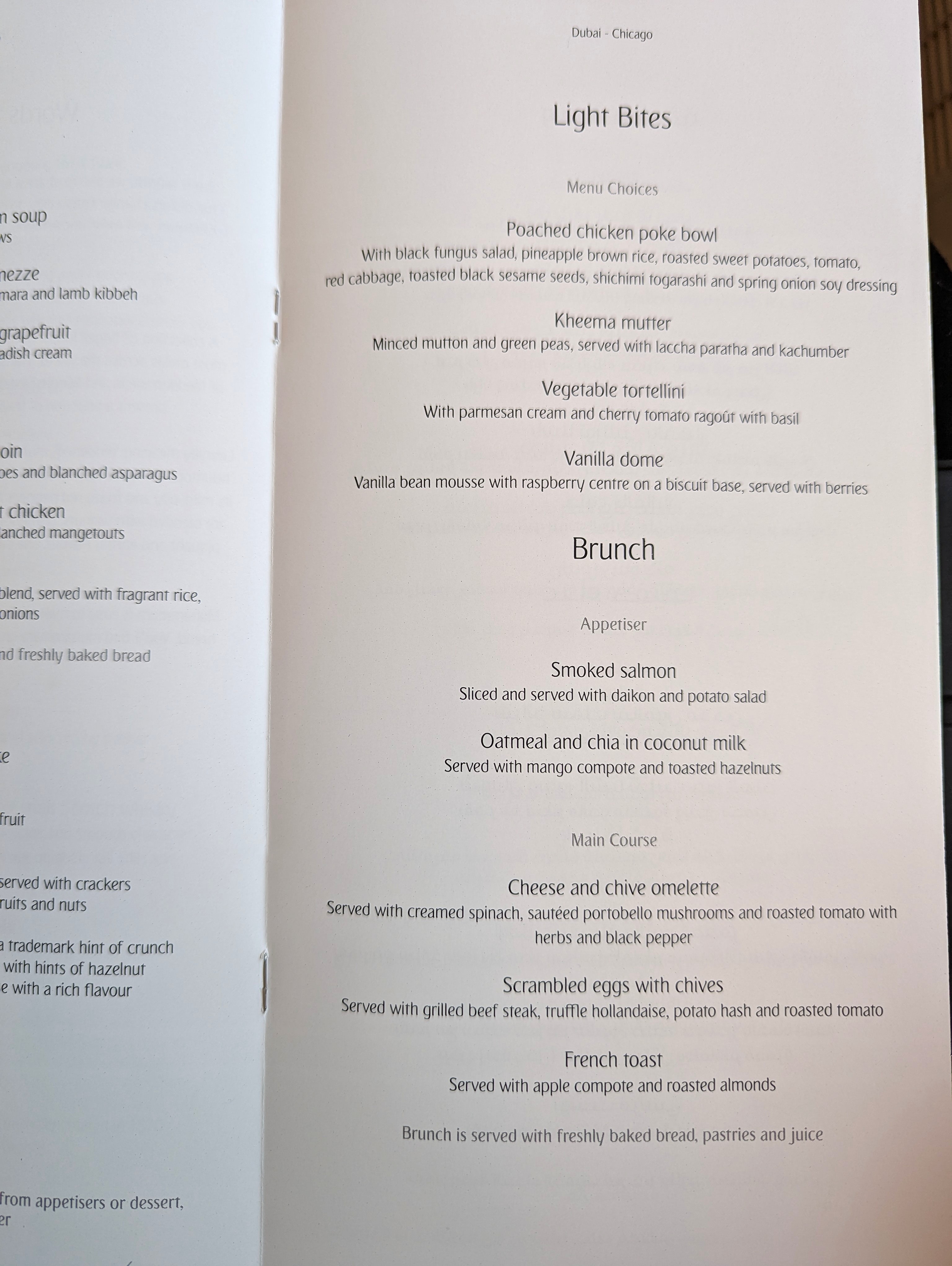 After several hours of sleep, I decided to get up and watch some movies. As I was doing so, a flight attendant stopped by to ask if I was doing okay and if I needed anything. She even suggested I try something from their light bites menu. Even though I was not hungry, I ordered the kheema muttar which is basically minced mutton and green peas cooked with spices and served with paratha which is a fried flat bread. I also got a rose iced tea and the combo went really well together. The kheema muttar was very tasty and the portion size was quite large for a snack.